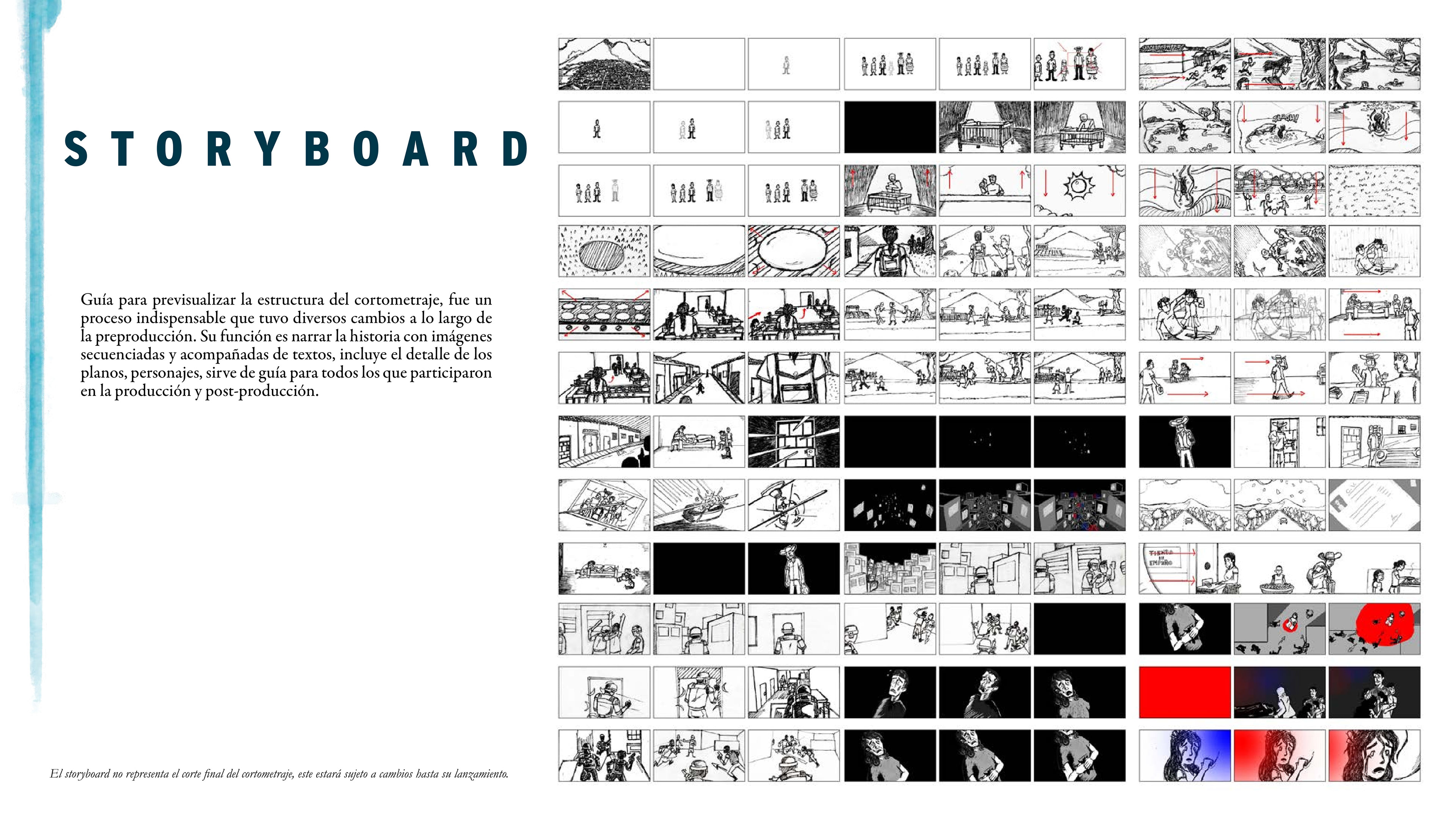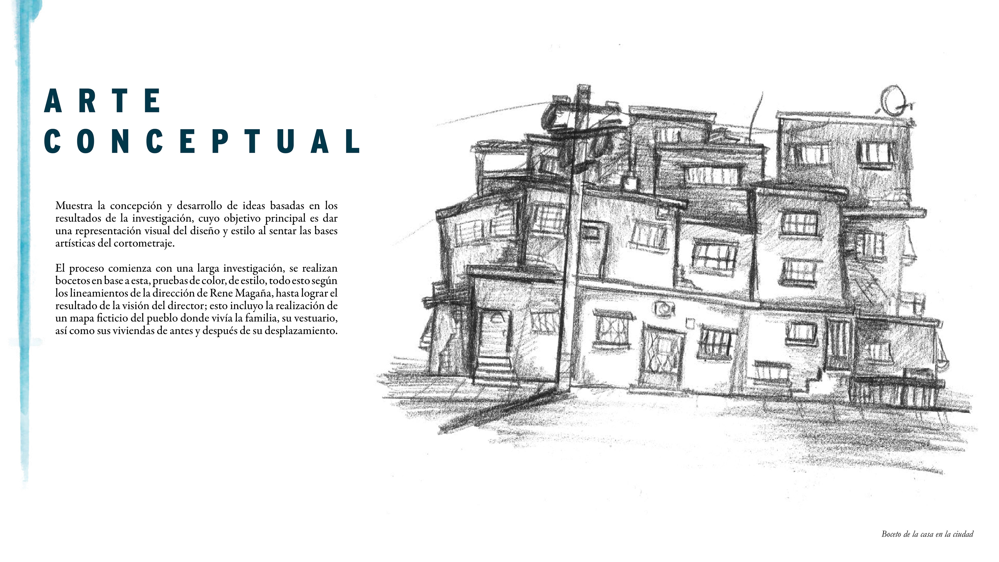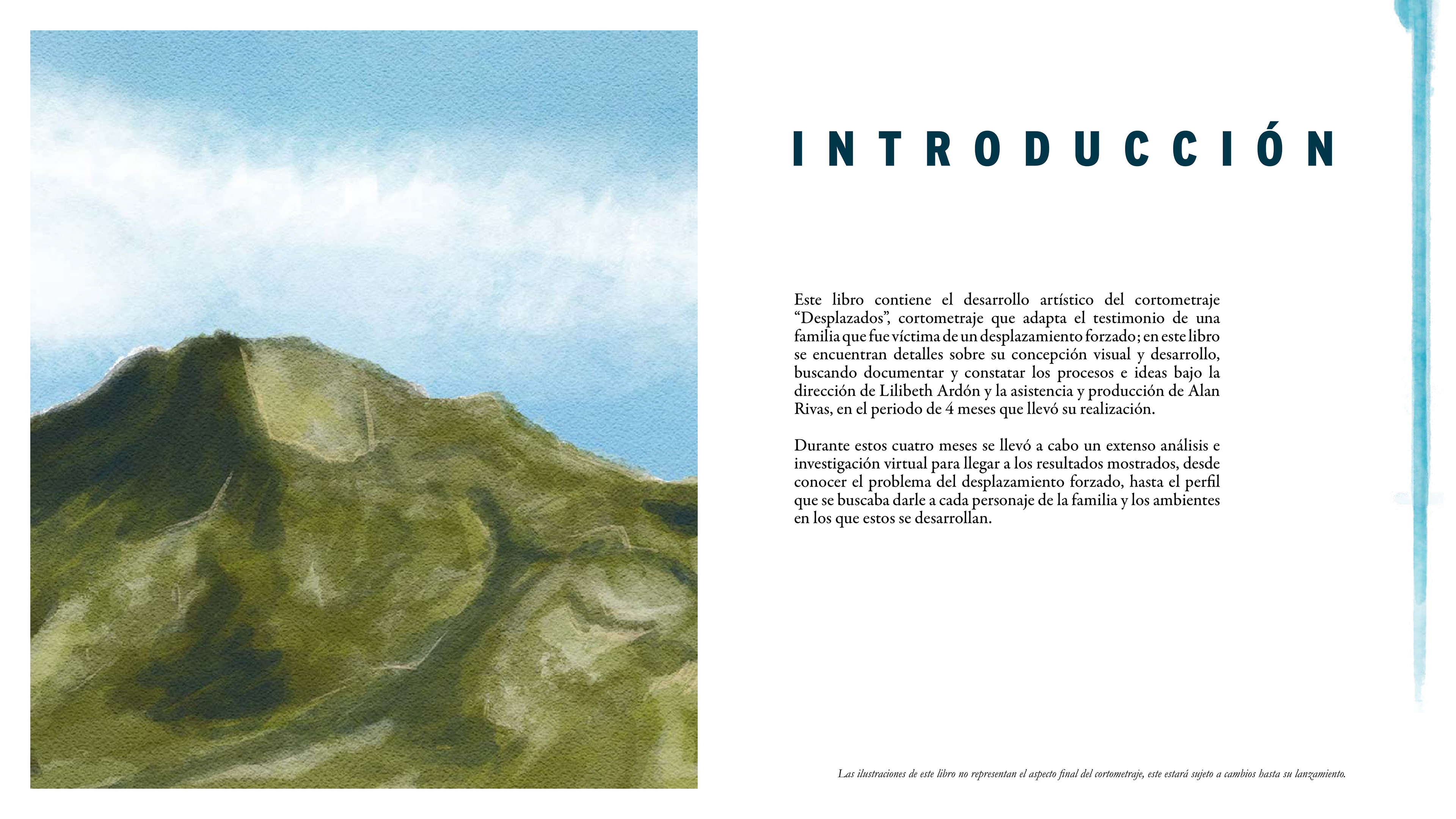 This document represents the illustrative work, which I was also in charge of along with Lilibeth Ardón. That is why it carries the title “Desplazados”—it was initially a working name. At the end, you will also find a VFX Breakdown video and the final short film for better appreciation.