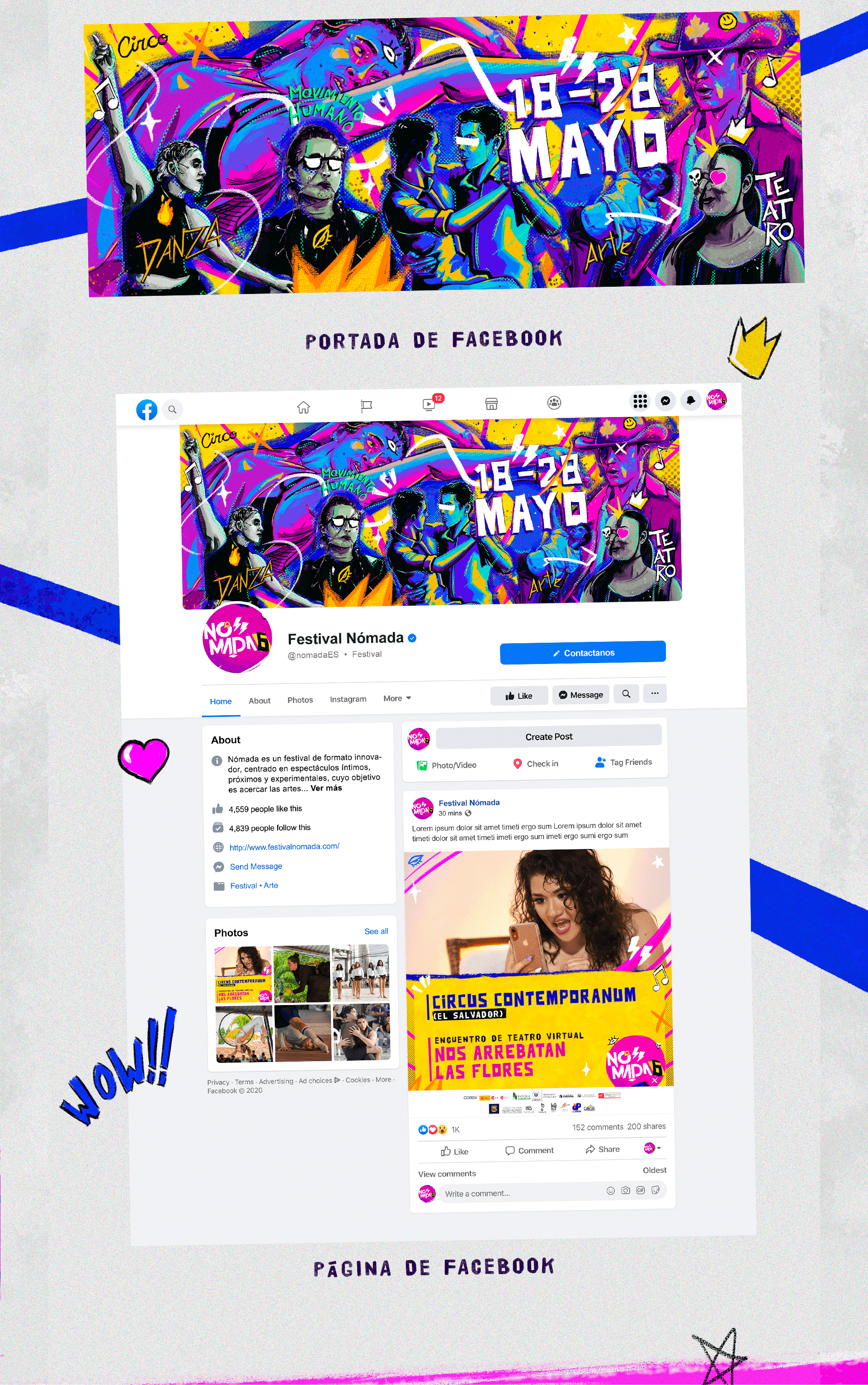 The concept is influenced by muralism and collage, since it implements various techniques to achieve the final composition, a resource was made from the festival's photographic bank, implementation of virtual graffiti techniques, rotoscopy and modern art, trying to make everything look coherent and with a chaotic rhythm like the streets where artists expose their soul.
